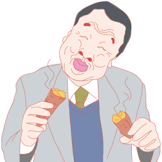 2017年02月23日 君の甘さとハートの熱さ 会社で昼食を食べようとディスカウントショップで買い物をしてるとどこからかいい匂いがしてきます。それはヤキイモの保温機を開けるたびに漂う甘く香ばしい匂いでした。普段はヤキイモなんて食べないし、ディスカウントショップでヤキイモもどうなんだという気もしますが、売れ行きも良く、どんどんと減っていく。そんな光景を見ると、意地汚い私は買わずにはいられなくなり、イモの入った袋をひとつカゴに入れ会社に戻ります。お昼のデザートになりましたヤキイモ。これが、これが予想外にウマい!ネットリと甘く。和菓子でも食べてるような感じ。ヤキイモに幸せを見つけてしまった私。それで一本100円。明日も買う。